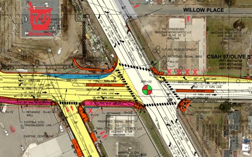 Road constructions starts today in Waconia and runs through early August. The project will reconstruct the intersection of 284 and Highway 5 with additional turn lanes, medians and a new flashing yellow arrow light.